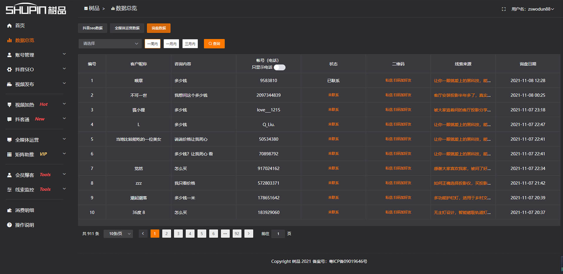 詢盤數據報表